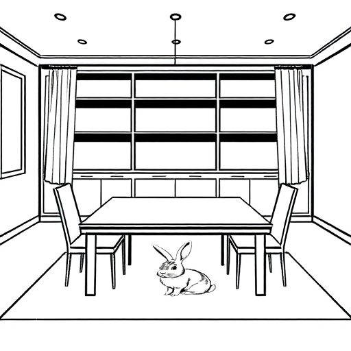 Result with prompt: “The bunny is hiding from the storm under the table.”