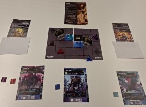 To answer this question, we conducted a series of 12 interviews, where we had participants play a modified version of the single-player boardgame Bury Me in the Rift by Matthew Bishop (2019), itself an adaptation of the popular video game Into the Breach (2018). Our modifications mostly consisted of simplifying the mechanics for short test-sessions, changing the setting and adding a proper narrative component.
